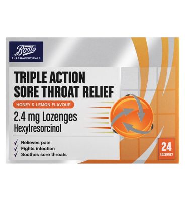 Boots Triple Action Sore Throat Relief 2 4mg Lozenges Honey Lemon 24 Lozenges Boots